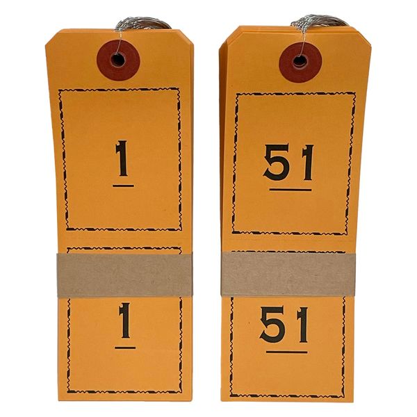 | 商品の特徴 | 預かり荷物の管理に最適な番号札。ホテルや旅館の手荷物預かりに便利です。柔らかい針金を使用し、1番から100番までセットされた連番荷札です。色別で使い分けください。 | ||