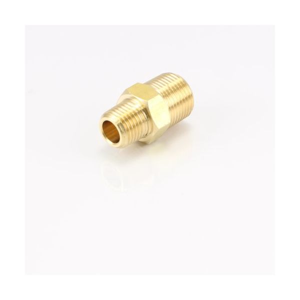 | 商品の特徴 | ●サイズ違いの六角ニップル。 【特長】 ・六角がついているためスパナ掛けも容易で、しっかりと配管することが可能 ・2段違いのサイズまで対応可能●接続種類:ねじ⇔ねじ異径/接続形状:[ニップル]六角ニップル/ねじの種類1:R/ねじの呼び1:1/4B(8A)/ねじの種類2(異径または異種ねじの場合):R/ねじの呼び2(異径または異種ねじの場合):3/8B(10A)/最高使用圧力区分:2.0Mpa超/最高使用圧力(MPa):6.9/使用温度範囲(℃):-50~+150/材質:[黄銅]C3604BD | ||