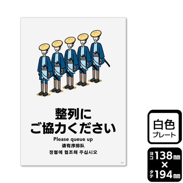 | 商品の特徴 | 和風のイラストが宿泊施設や飲食店のインバウンド対策に最適!大名行列のイラストで整列をお願いするプレートです。 | ||