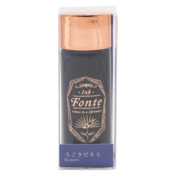 - Fonteボトルインクは、モチーフにした鉱石に込められた意味や祈りから色に名前を付けました。「書く」に想いをのせるインクです。うごきだそう〈カイヤナイト〉前へと踏み出す勇気を与えてくれるとされるカイヤナイト。あなたが何かを始めたり、動き出す原動力になるはず。