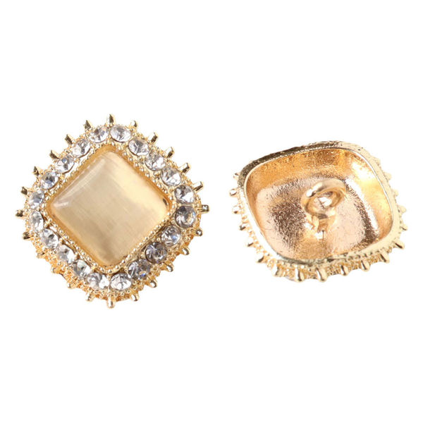 アクセサリーボタン スクエアビジュー 2個 φ16mm 高さ9mm ホワイト×ゴールド A24-64 1袋2個入(5袋、10個入)(直送品)