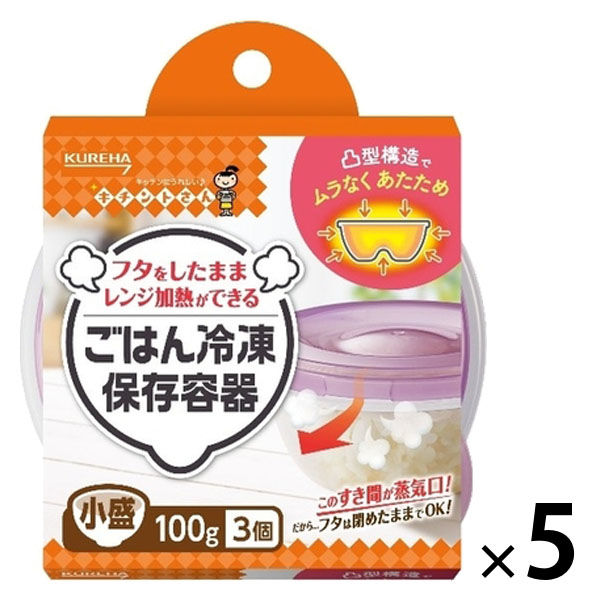 キチントさん ごはん 冷凍保存容器 フタを閉めたままレンジOK 小盛 100g 1セット(1個(3個入)×5)クレハ