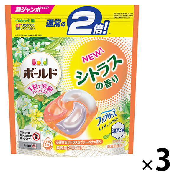 ボールド ジェルボール4D シトラス&ヴァーベナ 詰め替え 超ジャンボサイズ 1セット(22粒入×3個) 洗濯洗剤 P&G【旧品】