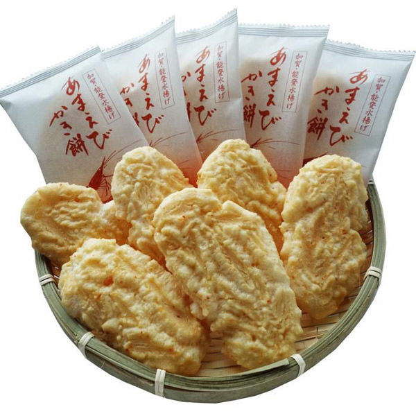 | 商品の特徴 | 国内産もち米を主原料に、加賀・能登の海で生息する甘えびをふんだんに使用し、香ばしいおかきに焼き上げました。 | ||