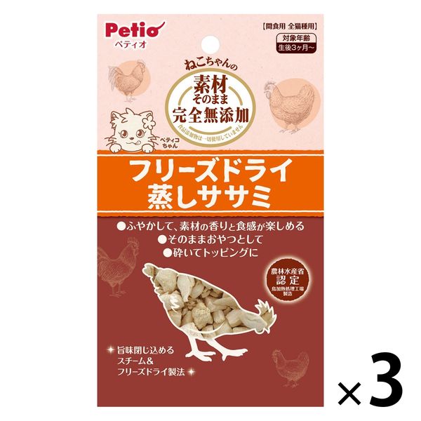 ペティオ 素材そのまま 完全無添加 ねこちゃんのフリーズドライ 蒸しササミ 15g 3袋 猫用 おやつ
