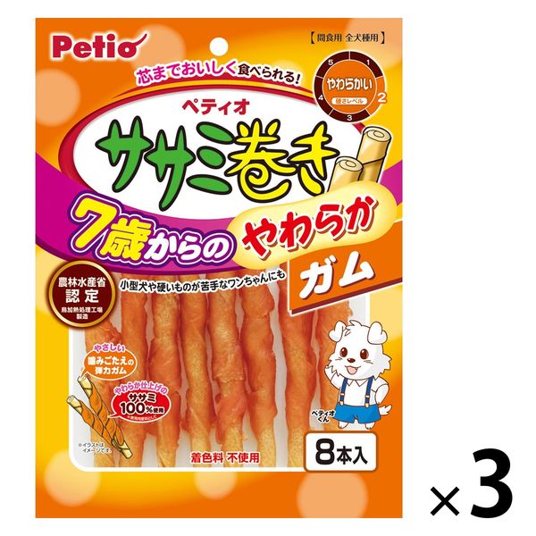 ペティオ ササミ巻き 7歳からの やわらか ガム 8本入 3袋 犬用 おやつ