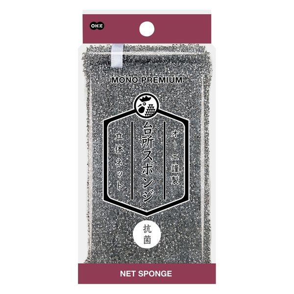 キッチンスポンジ モノプレミアム ネットスポンジ 立体ネット 抗菌 収納に便利なヒモ付き シルバー 1個 オーエ