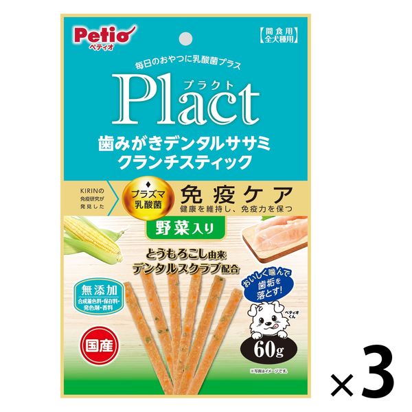 ペティオ プラクト 歯みがきデンタルササミ クランチスティック 野菜入 国産 60g 1セット(1袋×3)犬用 おやつ