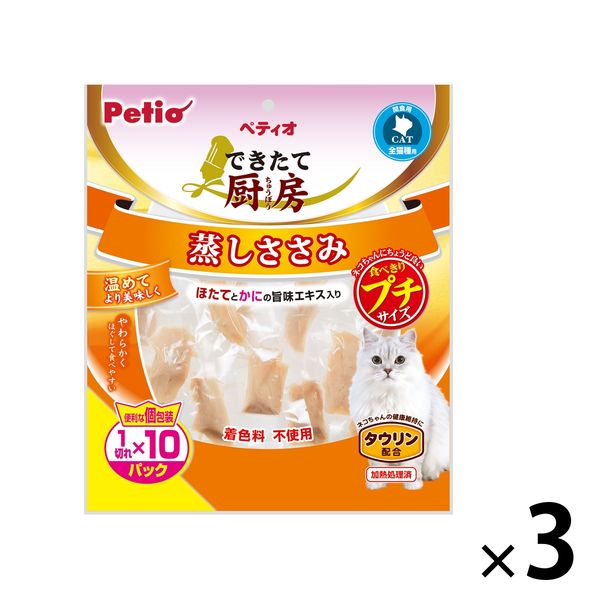 ペティオ できたて厨房 蒸しささみ プチ(1切れ×10パック)1セット(1袋×3)猫用 おやつ