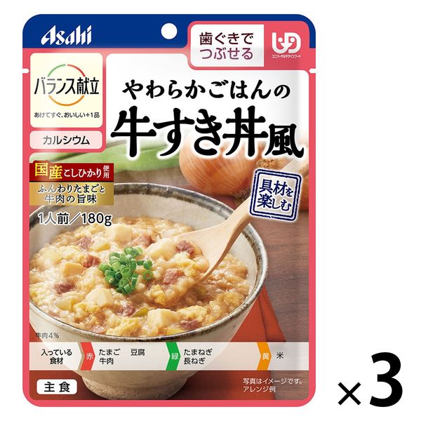 本商品:介護食 やわらか食 アサヒグループ食品 バランス献立 やわらかごはんの牛すき丼風 3個【歯ぐきでつぶせる】 |