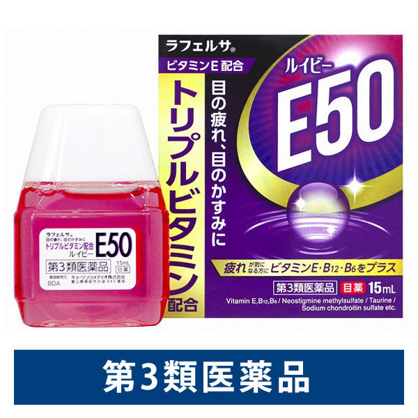 ルイビーE50は天然型ビタミンEにビタミンB6、B12等を配合した目薬で、中高年から始まる「目の疲れ」、「目のかすみ」などの症状に優れた効果をあらわします。