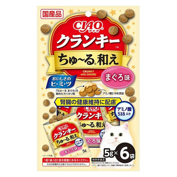 本商品:いなば CIAO チャオ クランキーちゅ~る和え アミノ酸S18入り まぐろ 国産(5g×6袋)1袋 猫用 おやつ