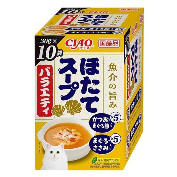 いなば CIAO チャオ ほたてスープバラエティ かつお・まぐろ節入り まぐろ・ささみ入り 国産(30g×10袋)1箱