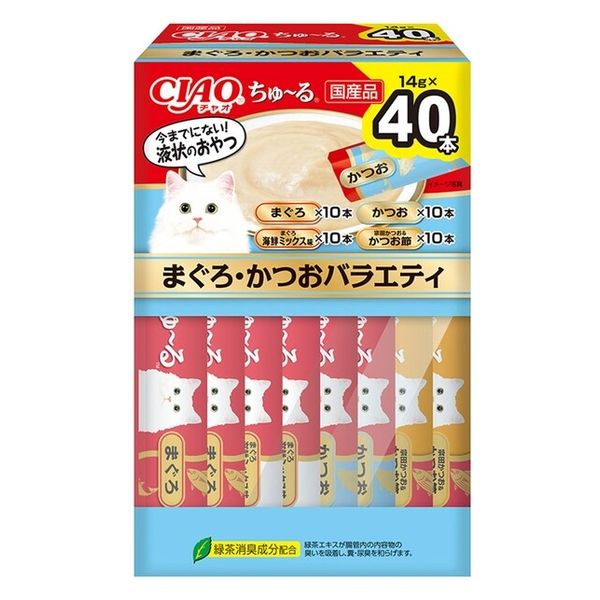 (バラエティパック)いなば CIAO チャオ ちゅーる 猫 まぐろ・かつおバラエティ 国産(14g×40本)1箱 ちゅ~る キャットフード おやつ