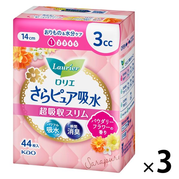 ロリエ さらピュア吸水 超吸収スリム 3cc パウダリーフラワーの香り 1セット(44枚入×3パック) 花王