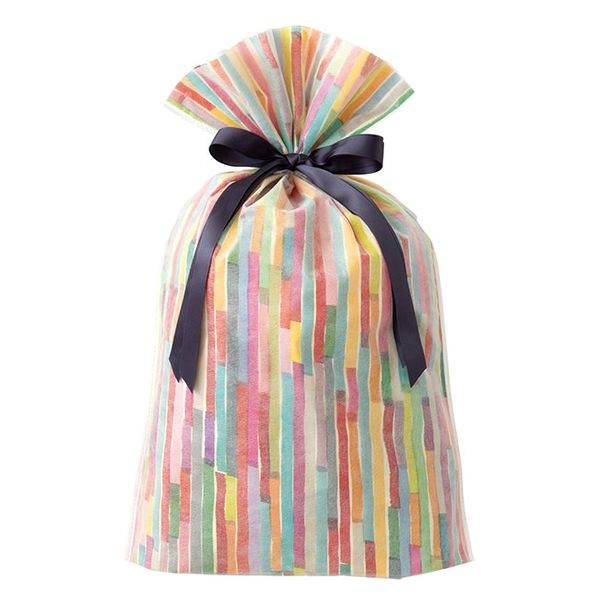 カラフルな色遣いがオシャレなリボン付巾着袋です。リボンを結ぶだけで簡単にギフトが完成。