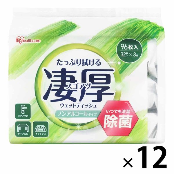 ウェットティッシュ ノンアルコール 凄厚ウェットティッシュ 1セット(1パック(32枚入×3個)×12)アイリスオーヤマ