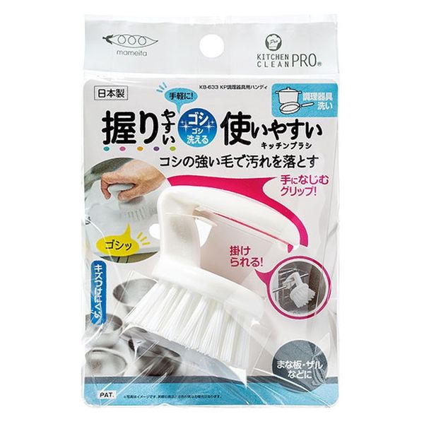 キッチンブラシ 握りやすい ゴシゴシ洗える まな板・ザル・調理器具洗い キズつけにくい ホワイト 日本製 1個 まめいた