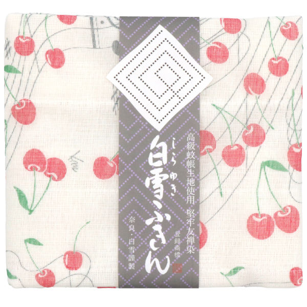 白雪 友禅ふきん 吸水性がよく すぐ乾く 友禅染め かや織りふきん 台拭き 食器拭き さくらんぼ あか 1枚