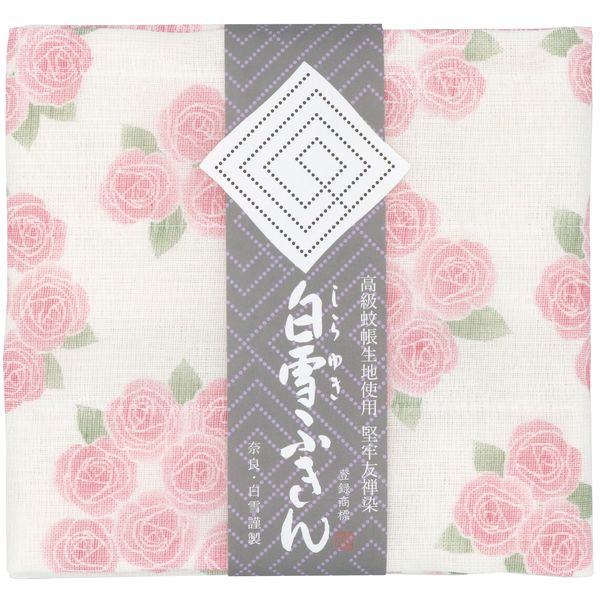 白雪 友禅ふきん 吸水性がよく すぐ乾く 友禅染め かや織りふきん 台拭き 食器拭き 薔薇 ピンク 1枚