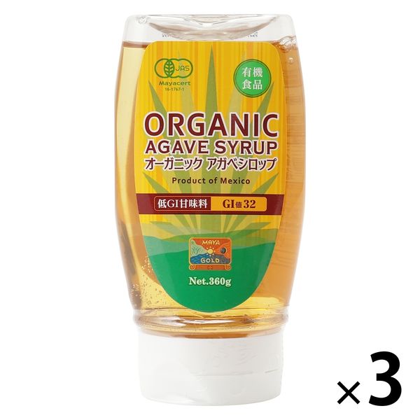 マヤ・ゴールド オーガニックアガベシロップ 360g 1セット(1個×3)有機JAS 低GI甘味料 富士貿易