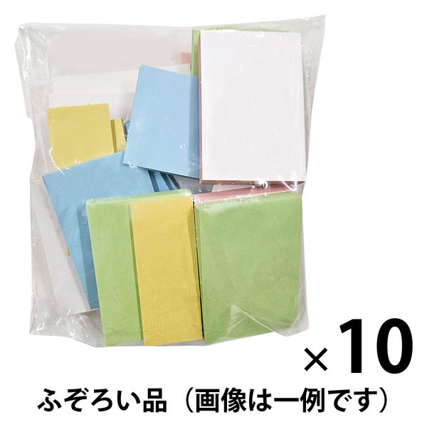 | アスクル担当者の声 | 1冊あたりの色やサイズ、枚数はバラバラですが、市販されている使いやすい付箋の素材を活用していますので、メモを書いて貼ったり目印に使用するうえでの使い心地はばっちりです!切り落とし端材を活用しお徳用パックとして大容量に設定していますので、付箋をたくさん使う方やさまざまな用途に活用する方におすすめです。 | ||