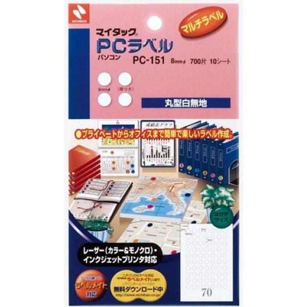 ニチバン マイタックPC丸ラベル 8mmφ 70片×10シート PC-151 1個(700片)