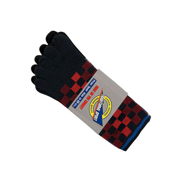 本商品:おたふく手袋 S-442アソートブロックチェック カラー 5本指 3P 1組(3足)(直送品)