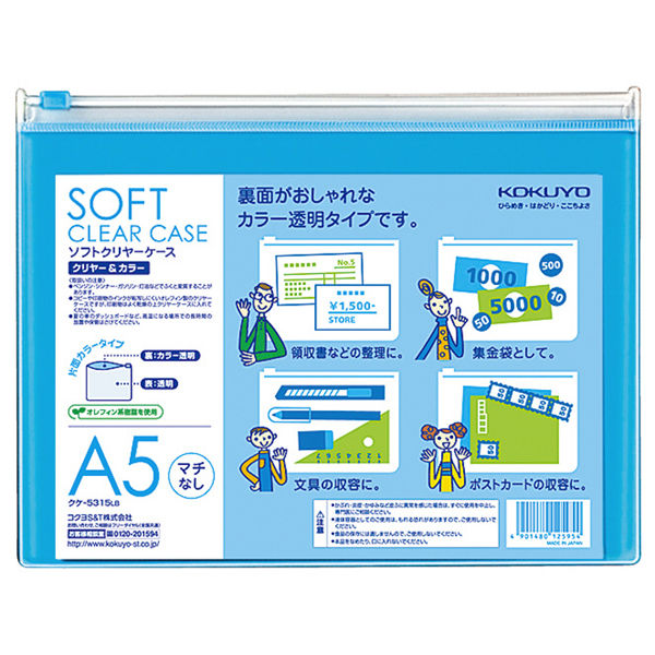 コクヨ ソフトクリヤーケース<クリヤー&カラー>(マチなし クケ-5315LB 1セット(15枚)