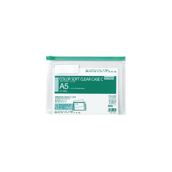 本商品:コクヨ カラーソフトクリヤーケースC 軟質タイプ A5 緑 チャック・マチ付き クケ-335G 1セット(20枚)