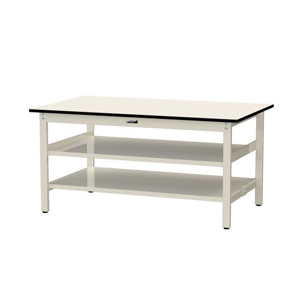 【車上渡し】山金工業 ワークテーブル 耐荷重300kg 固定 塩ビシート天板 全面棚 幅1500×奥行900×高740mm アイボリー 1台(直送品)