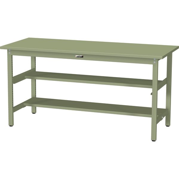 【車上渡し】山金工業 ワークテーブル 耐荷重300kg 固定式 スチール天板 半面棚付 幅1800×奥行600×高900mm グリーン 1台(直送品)