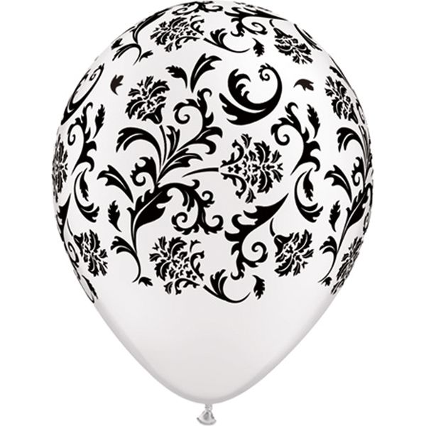 ゴム風船 28cm ダマスクプリントホワイト ブラック 50個入 0101256403 1セット(50個入) 宝興産(直送品)