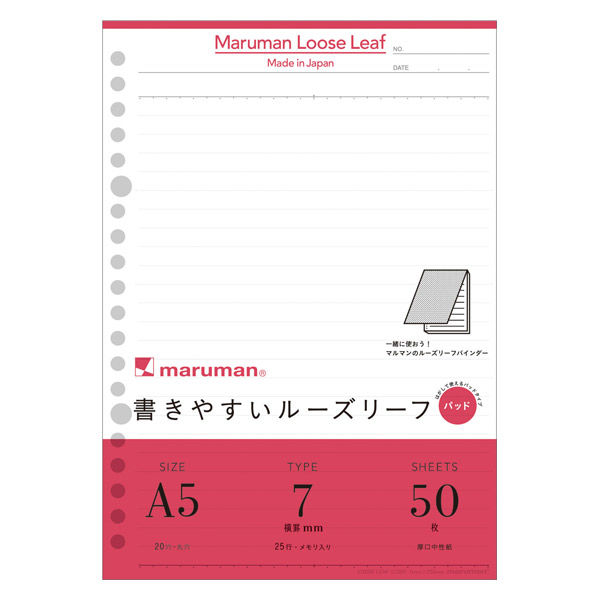 マルマン A5 ルーズリーフパッド 7mm罫 L1300P 1セット(5冊)