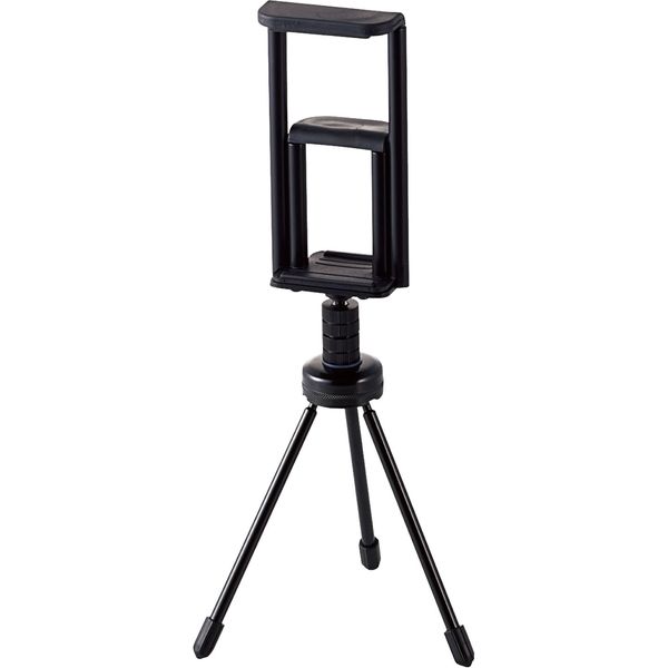 | 重量 | 約200g | 商品特徴 | ■角度調整ができ、スマートフォンとタブレットを同時に固定できる三脚型スタンドです。 ■スマートフォン用とタブレット用のクランプ式のホルダーを背中合わせにした構造です。 ■スマートフォン用のホルダーはおよそ4.0~6.0インチに対応し、タブレット用はおよそ5.0~11.0インチに対応しています。 ■ホルダー部には滑りにくくスマートフォン本体を傷つけないためのシリコンパーツが付いています。 ■ホルダー部と三脚部をつなぐジョイント部の上側のネジを回すことで、角度調整を保持したり緩めたり出来ます。 ■三脚底面にしっかり固定ができる滑り止めパーツがついています。 ■三脚雲台部分には標準ネジ(1/4インチ)を採用しているので、スマートフォンホルダー以外にもコンパクトデジタルカメラなども取り付け可能です。 ■本製品の構造上、対応サイズでもバランスの悪い場合はスタンド状態を維持することができない場合がありますのでご了承ください。 |