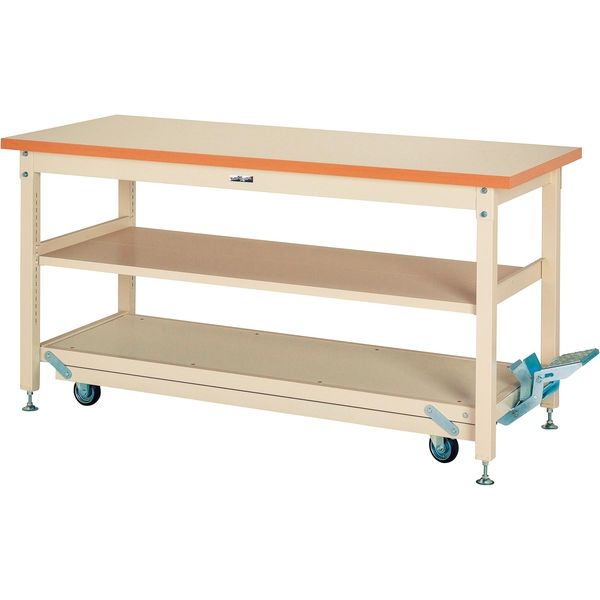 【車上渡し】山金工業 ペダル移動 ワークテーブル 耐荷重3t 中間棚板 メラミン天板 幅1800×奥行750×高922mm IV 1台(直送品)