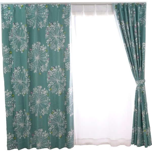 スミノエ デザインライフ セミオーダー カーテン クッカ 2300×1200mm ブルーグリーン 1セット(2枚入)(直送品)