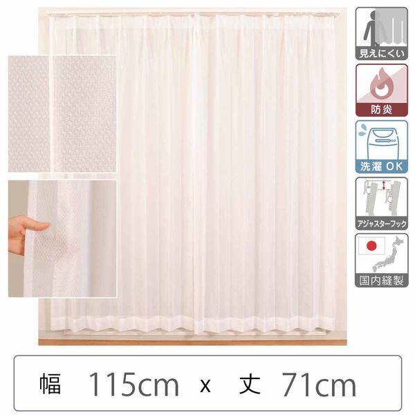 | 商品の特徴 | 国内縫製のレースカーテンです。特徴的な機能は、「中から見えて外から見えない」ミラーレース機能です。レースカーテンを鏡のように反射する加工をしています。この反射を利用して、外からは中が見えないようにした機能です。日中、外からの視線がちょっと心配な場所、一般家庭から、オフィス、店舗、クリニック、学校、幼稚園、保育園と、数々の場所に選ばれてきました。安心の防炎加工が付いているので、防炎が義務付けられている場所への納品も可能です。汚れたら、洗濯機でのお手入れが可能なウォシャブル機能も付いています。 | ||