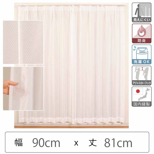 | 商品の特徴 | 国内縫製のレースカーテンです。特徴的な機能は、「中から見えて外から見えない」ミラーレース機能です。レースカーテンを鏡のように反射する加工をしています。この反射を利用して、外からは中が見えないようにした機能です。日中、外からの視線がちょっと心配な場所、一般家庭から、オフィス、店舗、クリニック、学校、幼稚園、保育園と、数々の場所に選ばれてきました。安心の防炎加工が付いているので、防炎が義務付けられている場所への納品も可能です。汚れたら、洗濯機でのお手入れが可能なウォシャブル機能も付いています。 | ||