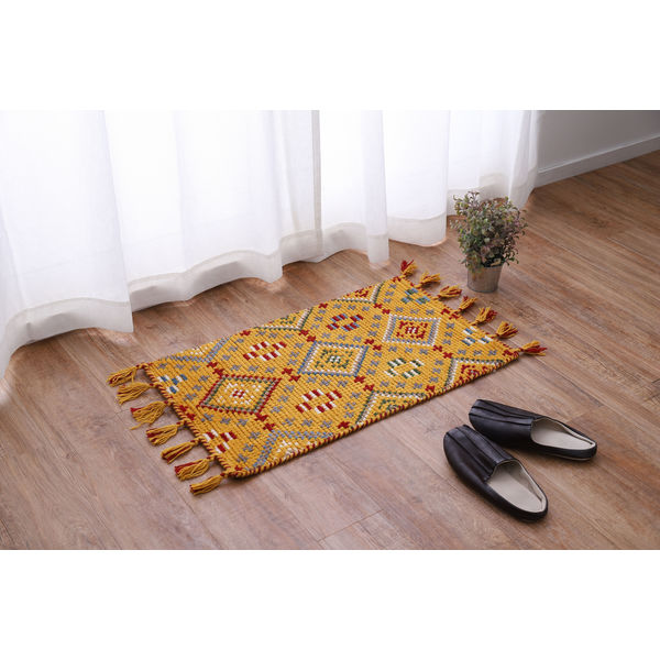 萩原 ウール100% 手織りマット 600×900mm ヤードイエロー 270074169 1枚(直送品)
