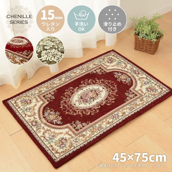 | 商品の特徴 | 表面はシェニール糸というモール状の糸をたっぷり使用して織り上げました。中材にはウレタンを1.5cm使用し、ふっくら感増量。裏面はノンスリップ加工をしているので安心の作りです。 | ||