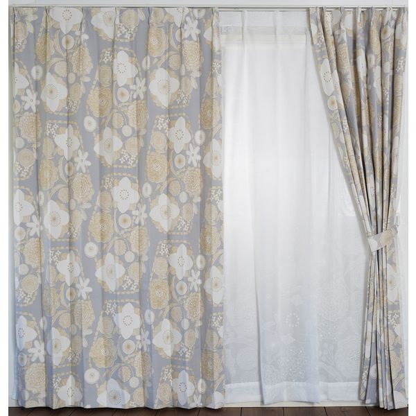 | 商品の特徴 | 手書きの花をパールプリントで表現したドレープカーテン。 | ||