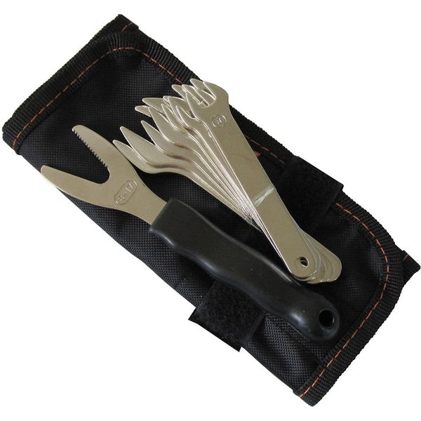 | 商品の特徴 | 狭い隙間にあるボルト、ナット等を回す作業に最適な厚さ2mmの薄口スパナセット。フリーサイズ対応レンチもセットアップされ、インチサイズや特殊ナットにも使えます。ディスクグラインダーのシャフト固定や切断砥石の交換、ホビー、ギターなどのパーツ調整、棚、ベッド、テレビ台などの組み立てに便利。フリーレンチを抑えに使うと、ボルトナットの締め、緩め時に、空回りせずに作業ができます。 | ||