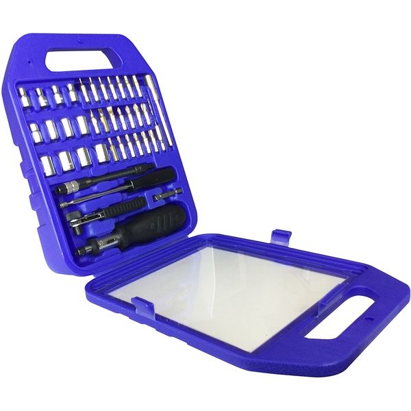| 注意事項 | ・各種ビットやソケットはサイズに合ったものを必ずお使いください。・電気の流れている箇所では絶対に使用しないでください。・コンパクトラチェットは仮締め専用工具です。パイプ等をハンドルに差し込んで無理に使用すると、品質を損なう恐れがあります。・ドリルビットは使用前に亀裂や割れがないか確認してください。また、使用時は加工物をしっかり固定してからご使用ください。 | セット内容 | ドライバービット(マイナス4、5、6mm、プラスNo.0、1、2、3)、6角棒ビット(1.5 、2 、2.5 、3 、4 、5 、6mm)、トルクスねじ用ビット(T-10、T-15、T-20、T-25、T-27、T-30)、ソケット 4 、4.5 、5 、6 、7、8 、9 、10 、11 、12 、13mm 、ドリルビット3mm、マグネットホルダー、フレキシブルシャフト、ソケットアダプター、コンパクトラチェットハンドル、ラチェットドライバーハンドル、マグネット式ピックアップツール(伸縮タイプ) |