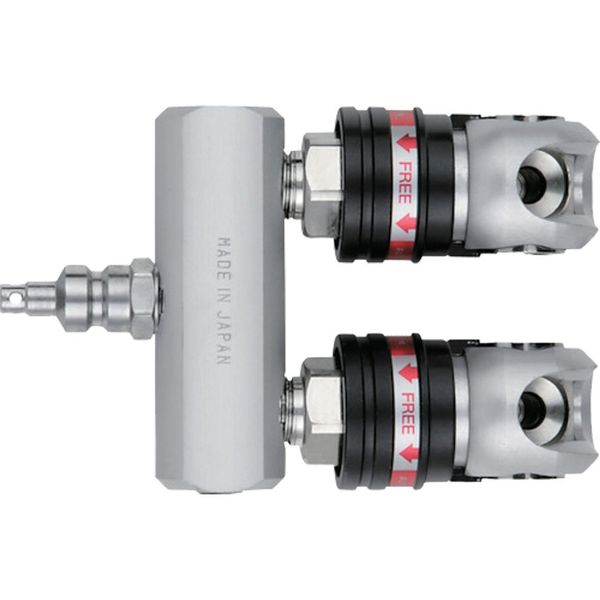 | 使用上の注意 | ガタ、緩み等の異常を感じたら絶対に使用しないでください。この製品は空気(エアー)専用ですので、それ以外の流体にはご使用になれません。カプラ・パーツに関するエアー工具以外の用途には使用しないでください。このカプラ・パーツは、一般のエアーホース・ホース金具(最高使用圧力が10kgf/cm2〈0.98MPa〉未満のエアーホース・ホース金具)とのご接続を防止するため、特殊専用金具となっています。万一、カプラ・パーツが損傷(エアー漏れ)した場合は、必ずお買い求めの販売店、又は製造元へ点検・修理に出してください。流体は必ずソケット側からプラグ側に流してください。加圧中の着脱の際はプラグ側・ソケット側それぞれ確実に手に持って行ってください。カプラ・パーツの取り付け、取り換えは圧縮空気を抜いてから作業してください。カプラ、パーツの分解はしないでください。又、人為的な衝撃、曲げ、引っ張りを加えないでください。破損する恐れがあります。接続に関しては同じマッハの製品をご使用ください。(他社の製品との接続はエアー漏れを生じる場合があります。)最高使用圧力を超えた圧力、使用温度範囲外で使用しないでください。空気吐出口を人体に向けないでください。金属粉や砂塵などが混入する場所では使用しないでください。作動不良や漏れる恐れがあります。飛散物に注意し、周囲に気を付けて作業してください。 | ||
