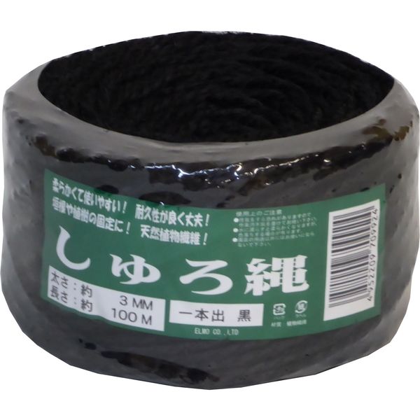 エルモ しゅろ縄玉巻3mm×100m 黒 二本出 40700038 1個
