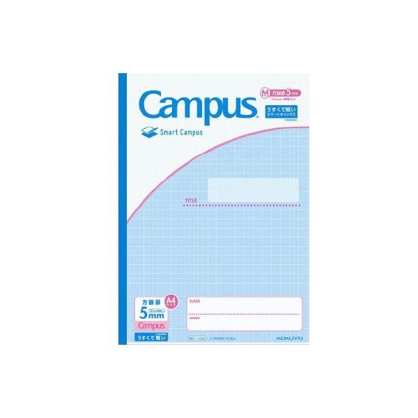 | 商品の特徴 | ●うすくて軽いキャンパスノート<スマートキャンパス>(A4・5mm方眼罫10mm実線入り・30枚)●従来のキャンパスノートより平滑度の高い紙を使用しており、書き心地なめらか | ||