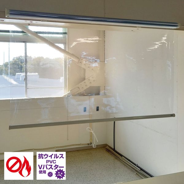 | 商品の特徴 | 小型ロールスクリーン。視界クリアな防炎+抗ウイルスシートを使用 | ||