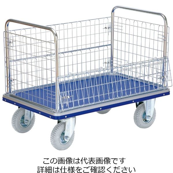 | 商品の特徴 | ●小さい段差やアスファルト・屋外等でも搬送可能な金網付き台車です。●キャスター220パイ空気入りタイヤ●金網ピッチ75×45mm | ||