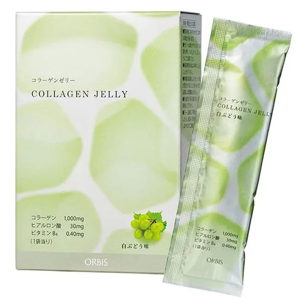 | 商品の特徴 | コラーゲンとヒアルロン酸が同時に摂れる、いつでもどこでもぷるんっと美味しいスティックゼリーです。吸収が早い、分子の小さなコラーゲンが1袋に1,000mg!さらにたった1gで約6リットルもの保水力をもつヒアルロン酸に、ビタミンB6も加えました。コラーゲン特有の香りや味は極限までカットされ、まるでフルーツゼリーのようなみずみずしい美味しさ。脂肪分ゼロ&1袋20kcalで、ダイエット中でも安心です。■白ぶどう味:強い甘みが特長のマスカット・オブ・アレキサンドリア果汁を使用 ■個包装7~14日分(20g×14袋) | ||